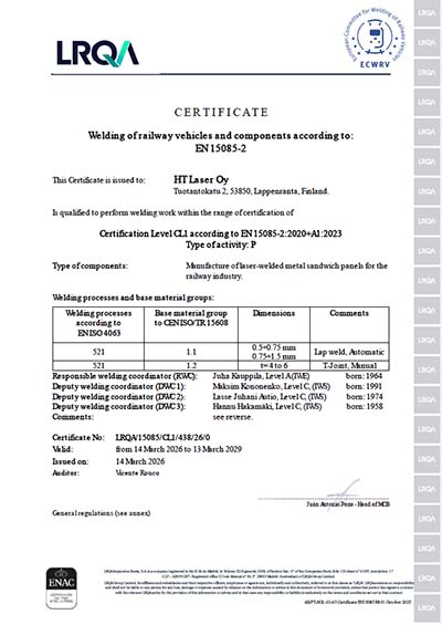 EN 15085-2 (HT Laser Lappeenranta)